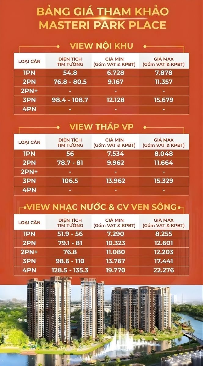 CHÍNH SÁCH BÁN HÀNG VÀ GIÁ BÁN DỰ KIẾN MASTERI PARK PLACE